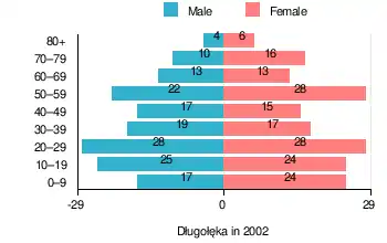 Figure 1. Population pyramid of village in 2002 — by age group and sex[2]