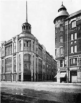 The present structure was purpose-built as a retail store for the officers of the garrison guard. At the time, officers were paid a high salary and were expected to live a lavish lifestyle. Along these lines, the officers' cooperative felt it appropriate that their store should be no less luxurious than the most fashionable Parisian department stores. An architectural competition was held, presided over by famed Austrian architect Otto Wagner, and the German firm Wayss & Freytag was selected to lead the construction. The first phase of the store opened in 1908 as the Dom Gvardeyskava ekonomicheskava obshchestva (Дом Гвардейскаго экономическаго общества), i.e. the "House of the (Garrison) Guard Economic Society", but acquired the nickname Gvardeyskaya Ekonomka (Гвардейская экономка), or "Guards' Discount Shop" due to the discounted prices. In 1912–1913 the second phase was opened.[2]