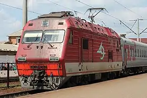 The DS3 (Ukrainian: ДС3) is an AC electric locomotive manufactured by Dnipropetrovsk research-and-production association for electric locomotive engineering (NPO DEVZ) jointly with Siemens. (Ukrainian: Дніпропетровський електровозобудівний завод, ДЕВЗ)