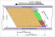 When recorded to tape, DVCPRO uses wider track pitch - 18 μm vs. 10 μm of baseline DV,[13] which reduces the chance of dropout errors during recording. Two extra longitudinal tracks provide support for audio cue and for timecode control. Tape is transported 80% faster compared to baseline DV, resulting in shorter recording time. Long Play mode is not available.