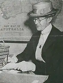 Daisy May Bates, CBE[1] (born Margaret Dwyer; 16 October 1859 – 18 April 1951) was an Irish-Australian journalist, welfare worker and self-taught anthropologist who conducted fieldwork amongst several Indigenous nations in western and southern Australia. Bates was a lifelong student of Australian Aboriginal culture and society and was the first anthropologist to carry out a detailed study of Australian Aboriginal culture. Some Aboriginal people referred to Bates by the courtesy name Kabbarli "grandmother."[2]
