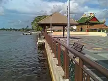 Dalat town also has a post office, district office, a hospital, a stadium (Stadium Perpaduan Dalat), a few blocks of shop-houses, a Catholic church (St. Bernard Church), a Methodist Church, a Chinese temple (age more than a century), a district mosque and a Senior Citizens’ Activity Centre (PAWE).[14] In June 2017, a voluntary fire station was launched. The fire station is an interim measure to respond swiftly to fires as the nearest facility is in Mukah, some 40 minutes’ drive away.[15] In December 2020,'Bazaarnita Fatima' and Phase 2 of Dalat Waterfront were officially opened by the Chief Minister of Sarawak, Datuk Patinggi Abang Abdul Rahman Johari bin Al-Marhum Tun Abang Haji Openg.[16]