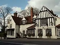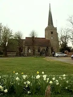 In medieval times Danbury developed from two manors, St Cleres/Herons and Runsell. Traces of both still exist. There was also a small part of a third, now extinct, manor of Gibcracks. The church of St John the Baptist is the oldest building in the village, dating from the 13th century, and is grade I listed.[4] There is a local folk tale that the church's spire was damaged by the Devil in the guise of a monk in the year 1402. According to the legend, the Devil passed between the legs of a parishioner as he departed, and the man later died of a wasting disease.[5]