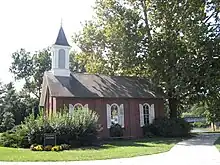 The University of Iowa Danforth Chapel is located in Iowa City, Iowa.[43] The architect for this Chapel was George Horner.[44] The chapel sits in today's Hubbard Park,[45] an area named for Philip Hubbard, a dean of students and the first Black American dean in the Big 10 universities.[45] The chapel is a small red-brick building with a white cupola, and it sits next to the Iowa River.[43][46] It continues to be a place for student weddings and meditation.[47]