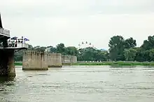 North Korean Ferris wheel with "Broken Bridge" in foreground (2008)