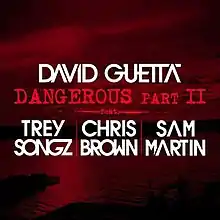 "Dangerous" is a song by French music producer David Guetta released as the second single from his sixth studio album, Listen. It features vocals by American singer and songwriter Sam Martin, who had also appeared on Guetta's previous single "Lovers on the Sun". It was released as a digital download on 6 October 2014. Both artists co-wrote and co-produced the song with Giorgio Tuinfort and Jason Evigan, with additional writing from Lindy Robbins. A remix featuring Trey Songz, Chris Brown, and Martin was released on 9 January 2015.