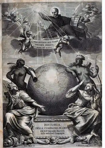 The remarkable success of Bartoli's literary debut coincided with the triumph of the High Baroque in Rome and it serves as a testament to the formative role of the Italian Jesuits as cultural entrepreneurs meditating between the sacred and the profane elements of the age. L'huomo di lettere (1645) became a cultural vademecum for the aspirations of a new generation of humanist intellectuals. Its eloquence and erudition found a lively balance between devotion to antiquity and consciousness of the modern. In Italy it was a bestseller. During the decades of Bartoli's life that followed, the work had editions and reprints nearly annually in Rome, Bologna, Florence, Milan and especially Venice. In the same period there were translations in French, German, English, Latin, Spanish and later Dutch. But history was his main task as a Jesuit man of letters. As such Bartoli represents the shift from the preceding Latin humanist historiography of Niccolò Orlandini and Francesco Sacchini to the illustrious Jesuit prose tradition he established in Italian when he undertook the official history of the first century of the Society of Jesus (1540). His monumental Istoria della Compagnia di Gesu (Rome, 1650–1673), in 6 folio vols. is the longest Italian classic. It begins with an authoritative, if somewhat ponderous, biography of the founder Ignatius Loyola.[8] Particularly fascinating and exotic are his histories of Francis Xavier and the Jesuit missions in the East which describe India and the opening of the East, L'Asia (1653) in eight books. A shorter work on Akbar the Great and Rodolfo Acquaviva came out in 1653 and was added to the third edition of L'Asia in 1667.[9] Part II of the first corner of the world he completed was Japan, Il Giappone (1660) in five books, and the Part III on China, La Cina appeared in four books (1663). To these he opened his projected Europa with the missions on the Jesuits in England, L'Inghilterra (1667) and a final work on the opening years of the order in the Italy of St. Ignatius, Diego Laynez and Francis Borgia, L'Italia (1673). With these histories he alternated treatises on language use, Del torto e del diritto del non si può[10] and moral works of like La Ricreazione del savio.[11] In the 1660s the Lyons Jesuit Louis Janin, translator of L'huomo di lettere issued Latin translations of these histories. From 1671 to 1674 Bartoli served as Rector of the Collegio Romano in recognition of his international prestige as a writer. Indefatigible in his final years Bartoli produced 4 Jesuit biographies and three scientific treatises on pressure, sound, coagulation. His several works of spiritual reflection were brought together a folio edition, Le Morali in 1684. His final work, Pensieri sacri[12] went to press after his death in Rome, January 13, 1685.