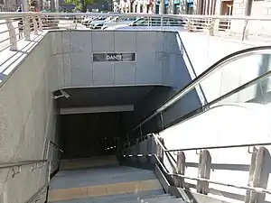 Dante is a station of the Turin Metro. The station was opened on 6 March 2011 as part of the Line 1 extension from Porta Nuova to Lingotto.[1] It is in the busy, commercial district of central Torino, on the Piazza Edmondo De Amicis, near the intersection with Corso Dante Alighieri and Via Nizza. It is located within walking distance to the Castello del Valentino as well as the medical center of Torino, including the CTO Orthopedic Hospital.