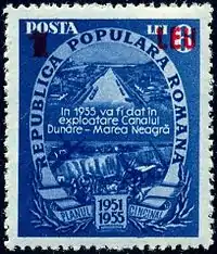 In parallel, authorities left aside sectors of employment for skilled workers, kept in strict isolation from all others,[17] they were attracted to the site with exceptional salaries (over 5,000 lei per month), as well as for young people drafted into the Romanian Army and whose files indicated "unhealthy origins" (a middle-class family background). Their numbers fluctuated greatly (regular employees went from 13,200 in 1950 to 15,000 in 1951, to as little as 7,000 in early 1952, and again to 12,500 later in that year).[5] At the same time, facilities meant to accommodate the projected influx of labor (including homes available on credit) were never actually completed.[2] This was overlooked by the propaganda machine, which furnished Stakhanovite stories instead, according to which work quotas were surpassed by as much as 170%.[37] Authorities also claimed the construction site was offering training to previously unskilled workers[2][37] (as many as 10,000 in one official communiqué).[2]