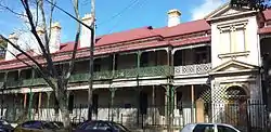 The opening of the Eveleigh Railway Workshops in the 1880s was the major stimulus for the building of Victorian worker's terraces in Darlington. This style of housing dominated the suburb and housed the workers for the railway workshops and nearby industries.[15] Some earlier workers cottages dating from the 1870s-1880s remain in Thomas and Vine Streets.
