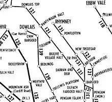 - ↑ Barrie, D.S.M. (1980). A Regional History of the Railways of Great Britain, volume 12, South Wales. Newton Abbot: David & Charles Ltd.