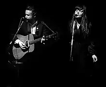 In 2012 Cross started a folk-noir duo with his domestic partner, Jessica Cassar on co-lead vocals, Jep and Dep.[26][27] They are often compared to Lee Hazlewood / Nancy Sinatra and Nick Cave and Kylie Minogue on Murder Ballads, with The Sydney Morning Herald's Jeff Apter stating, "ballads with the right balance of creeping menace and painful regret."[28] In late 2014 the duo independently released their debut album, Word Got Out, which received 4 out-of 5 stars in reviews at Rolling Stone Australia,[29] and The Sydney Morning Herald.[28] The duo adopt a film noir-aesthetic for their music videos, photographs and artwork and perform live with Cross on acoustic guitar and both on vocals.[30] They supported Johnny Marr (the Smiths),[31] Jessica Pratt, Mirel Wagner,[32] Courtney Barnett,[33] Kristin Hersh from Throwing Muses, Gruff Rhys from Super Furry Animals[34] and Blackeyed Susans.[35] Cross produced Word Got Out at his Bernstein Studios.[36]