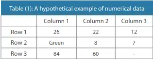 In the above table is an example of incomplete and invalid data. See Column 1, Row 2: The answer is alphanumeric when the rest of the table is numeric. See Column 3, Row 3: The answer is incomplete and missing data.