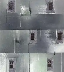 In 1981, Blackburn took up a position as a Visiting Professor at Georgetown University in Washington D.C.[10] At this time he became influenced by the vertical perspectives of the American cityscape, and began to experiment with electronic imagery and collage techniques. However, after this short period of experimentation Blackburn realised that his 'inner life was based in the natural world, not the city',[11] and subsequently embarked on a complex and long-running sequence of transcendent pastel drawings known as the Landscape Vision series. In the early 90s, Blackburn returned to Huddersfield to care for his mother, who died in 1993. He remained in the north of England, where he continued to observe the landscape and work on his project of visionary panels, until his death in 2016.