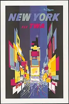 Through his TWA work, Klein earned additional recognition, and, in 1957, New York’s Museum of Modern Art (MoMA) added Klein’s TWA Times Square poster to its permanent collection.[5]