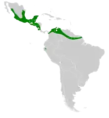 These bats are found most commonly in moist habitats that sustain a high volume of insects. Nighttime roosts of these animals are most commonly found in warm, dark, moist caves. P. davyi are found as far north as Mexico and as far south as South America and Honduras.[3] They typically prefer low elevations, but some individuals have been observed at elevations as high as 2,000 meters above sea level.[3] There has been no recorded observance of this species in Guyana, Suriname, or French Guiana.[3] Studies of this species have revealed genetic divergence between the Southeastern P. davyi population, and the Pacific and Gulf Coast populations.[8] This is believed to be a result of geographical barriers that separate these populations. These geographical barriers are Sierra Madre Occidental, Sierra Madre Oriental, and Sierra Madre del Sur.[8]