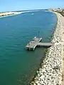 After several years of deliberations, a decision was made to build the channel at an estimated cost of $37 million. The channel's construction commenced in 1990 and was completed in April 1994. It is about 2.5 kilometres (1.6 mi) long, 200 metres (660 ft) wide and between 6 and 6.5 metres (20 and 21 ft) deep.[4] Construction involved the excavation of about 4.5 million cubic metres (160 million cubic feet) of material.[5] In addition to the excavation work, breakwaters, training walls, a bridge and a sand bypassing system were constructed.