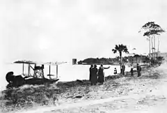 Daytona Beach’s beach was known for having a smooth, hard, and relatively clean surface for motor vehicles which would frequently race on it. Pilots soon realized the effectiveness of the compact sand and began using the beach as a runway. Hangars were built later and aircraft service was provided on beach. This former airport is one of only two beach airports that were successful. The other, Old Orchard Beach in Maine, was the starting point for at least five transatlantic flights during the 1920s and 1930s.[2] The first flight on the beach was in 1906 by Charles K. Hamilton, using Israel Ludlow's glider. The glider was pulled by an automobile and actually took place in Ormond. He went as high as 150 feet (46 m) on his first attempt, and 250 feet (76 m) on the second, before crashing into a flagpole and surviving with a bruised knee.[2]