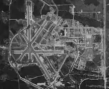 In the late 1930s four 4000 by 150 feet (46 m) runways were built, all paved, allowing DC-2s and DC-3s. The terminal was on the south side of the airport.[2] For a short while in 1940 a zoo-keeper was hired to maintain the airport.