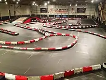 Daytona's Manchester venue is located near to Old Trafford. The indoor course[3] is located in a purpose-built, heated 50,000 square feet (4,600 m2) venue that opened in October 2000.[1] This venue is no longer owned by Daytona.