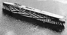 In the First World War, experiments were conducted on British aircraft such as the Royal Flying Corps' Sopwith Camels to make their angle and direction difficult to judge for an enemy gunner.[31] Similarly the Royal Navy painted some of their Felixstowe flying boats with bold disrupting lines similar to those of their ship camouflage. The effect remained dubious, but was found to reduce the incidence of the planes being targeted by anti-aircraft gunners on their own side.[32]