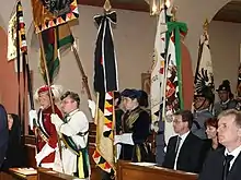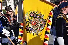 Otto's coffin was draped with the Habsburg imperial flag in black-yellow and featuring the imperial-royal coats of arms of Austria and Hungary in addition to the Habsburg family coat of arms.[46][47]