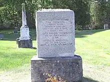 The day after the body was discovered, it was interred in Mowat Cemetery near Canoe Lake.[41][35][49][note 7] Under the direction of Thomson's older brother George, the body was exhumed two days later and was shipped to Owen Sound. It was re-interred in the family plot beside the Leith Presbyterian Church on 21 July in what is now the Municipality of Meaford.[50][51]