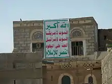 The slogan of the Houthi movement, an Islamist political and militant group in Yemen, reads: "God is the greatest, Death to America, Death to Israel, Curse on the Jews, Victory to Islam"[42][43]