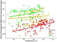 - 1 2 Frick, W. F.; Stepanian, P. M.; Kelly, J. F.; Howard, K. W.; Kuster, C. M.; Kunz, T. H.; Chilson, P. B. (2012). "Climate and Weather Impact Timing of Emergence of Bats". PLOS ONE. 7 (8): e42737. Bibcode:2012PLoSO...742737F. doi:10.1371/journal.pone.0042737. PMC 3411708. PMID 22876331.