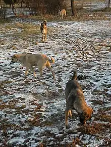 A feral animal is one that has escaped from a domestic or captive status and is living more or less as a wild animal, or one that is descended from such animals.[1] Other definitions[2] include animals that have changed from being domesticated to being wild, natural, or untamed. Some common examples of animals with feral populations are horses, dogs, goats, cats, rabbits, camels, and pigs. Zoologists generally exclude from the feral category animals that were genuinely wild before they escaped from captivity: neither lions escaped from a zoo nor the white-tailed eagles re-introduced to the UK are regarded as feral.[3]