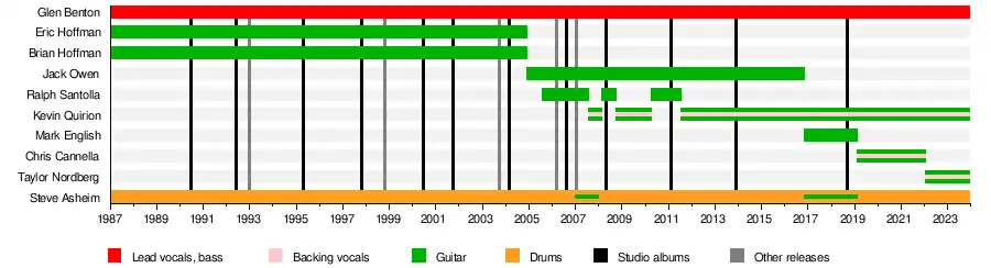In November 2016, it was apparent that guitarist Jack Owen had been replaced by Monstrosity guitarist Mark English without an official announcement made by the band.[24][25] Owen went on to join Six Feet Under in February 2017.[26]