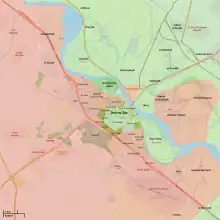 ![]() Situation in Deir ez-Zor in March 2014 Syrian Government control Opposition control | ||||||||