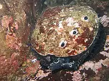 Abalone marine snail camouflaged with its environment at Del Mar Landing State Marine Reserve