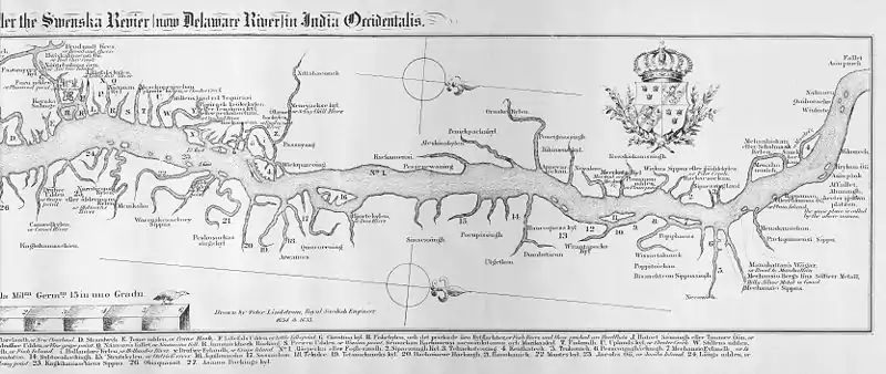 At the time of the arrival of the Europeans in the early 17th century, the area near the Delaware River was inhabited by the Native American Lenape people. They called the Delaware River "Lenape Wihittuck", which means "the rapid stream of the Lenape".[19] The Delaware River played a key factor in the economic and social development of the Mid-Atlantic region. In the seventeenth century it provided the conduit for colonial settlement by the Dutch (New Netherland) and the Swedish (New Sweden). Beginning in 1664, the region became an English possession as settlement by Quakers established the colonies of Pennsylvania (including present-day Delaware) and West Jersey. In the eighteenth century, cities like Philadelphia, Camden (then Cooper's Ferry), Trenton, Wilmington and New Castle were established upon the Delaware and their continued commercial success into the present day has been dependent on access to the river for trade and power. The river provided the path for the settlement of northeastern Pennsylvania's Lehigh Valley, and northwestern New Jersey by German Palatine immigrants—a population that became key in the agricultural development of the region.