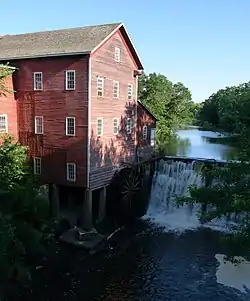 The structure was built as a gristmill.[2] A mill pond was created near-by. Currently, the site is used as a museum.[3]