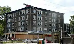 Delmar Apartments, also known as Chelten Station, is a historic apartment building located in the Germantown neighborhood of Philadelphia, Pennsylvania. It was built in 1902, and is a five-story, "U"-shaped brick building in the Colonial Revival-style. The first floor is faced in Wissahickon schist and has a wood porch. It features four-story bay windows, a terra cotta cornice, and pediment above the main entrance. It was the first large apartment building built in the Germantown-Chestnut Hill area.[2]