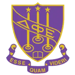 Delta Phi Epsilon's flower is the Lovely Purple Iris, and its international mascot is the Unicorn. The sisterhood badge is an equilateral triangle in gold surrounded by 21 pearls, the jewel of the sorority. DPhiE's open motto is "Esse Quam Videri" (in Latin: "To be rather than to seem to be").[1] They hold great value in the founding principles of justice, sisterhood, and love.[14]