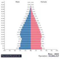 1. "Peru Population 2022 (Demographics, Maps, Graphs)". worldpopulationreview.com. Retrieved 11 May 2022.
