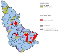 According to 2002 census, the population of Serbian Banat (excluding City of Belgrade's settlements of Borča, Krnjača, Ovča, Padinska Skela, Kovilovo and Besni Fok which are geographically part of Banat) numbered 616,202 people and was composed of:[3]