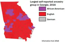About 800,000 people in Georgia reported having Irish ancestry.[15] Germans are the fifth largest ancestry in Georgia.[16] Other European ancestries in Georgia are Italian, French, Polish and Dutch.[17][18]