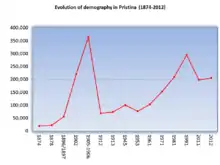 - ↑ Population areas during years in Pristina Archived 2014-03-02 at the Wayback Machine, official web site. Retrieved on 27 February 2014