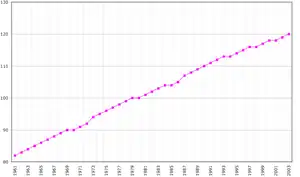 According to the 2012 census, Saint Vincent and the Grenadines had a total population of 109,991, an increase of 969 since the 2001 census.[1][2] While the country's population continues to increase, annual growth has slowed since the 1991 census.[1]
