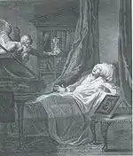 Engraving of Hayman's matching painting, Death of an Unbeliever