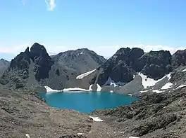 Büyük Deniz Gölü ("Big Sea Lake" in Eng.) is the deepest glacial lake in Turkey with depth of 60 m (200 ft) at an altitude of 3,384 m (11,102 ft). Also, it is the largest lake in terms of surface area in the Kaçkar Mountains with 95500 m² (23 acres).[1]. There is one walking route to the lake from Yaylalar village of Yusufeli. It takes between 5 and 6 hours to reach to the Büyük Deniz Gölü.[2][3]
