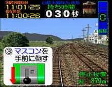 Densha de Go! was the creation of Taito video game designer Akira Saito.[1] Based on his personal fascination with Japanese trains and railroads, Saito wanted to create a video game that allowed players to easily become familiar with driving a train.[1] His primary focus was towards the game's controls as he wanted them to be responsive and as accurate to a real train as possible — his father worked for the Kyoto City Transportation Bureau Facilities Division, which made this task easier to fulfill.[1] As a way to attract railroad enthusiasts to his game, Saito included many real-world train lines and stations such as the Yamanote Line, paying close attention to detail and the way they were represented.[1] He often traveled to these stations himself to make any last-minute changes or corrections.[1] Saito also felt that its realistic, familiar premise could attract newer, more "ordinary" players.[1] Several of the locations and trains were taken from experiences in his childhood, which he claims to have been the "driving force" of development.[1] Taito was skeptical of the idea at first, concerned that its realistic premise would cause it to become lost within the growing popularity of racing and fighting games. Saito felt differently, thinking that its unique concept would instead make it stand out from other games at the time.[1]