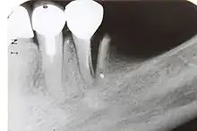 - ↑ McCabe PS, Dummer PM (February 2012). "Pulp canal obliteration: an endodontic diagnosis and treatment challenge". International Endodontic Journal. 45 (2): 177–97. doi:10.1111/j.1365-2591.2011.01963.x. PMID 21999441.