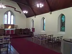 Denwick is also home to Denwick Chapel. The small gothic styled chapel, was built as a gift on the expense of Algernon George Percy, 6th Duke of Northumberland at £537.4s.0d. (approximately £205,038.07), with the foundation stone laid on 10th February 1876 by Mrs Lisle, and was built by Robertson and Sons of Alnwick and designed by George Reavell, an architect at Alnwick Castle. [9][10][11] The stone for the church is from Denwick Quarry. The church was built because villagers wanted a church in the village rather than travelling to Alnwick for services. The church has not been consecrated and is not dedicated to any saint yet does have a stained glass window of St. Anne, the mother of Mary and the maternal grandmother of Jesus. [12] Services are still held there once a month at on the second Sunday at 11.15am with services alternating between Holy Communion (Common Worship) and Morning Prayer (Book of Common Prayer). [13].