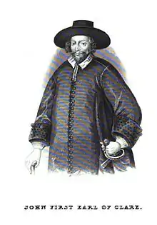 John Holles was a wealthy landowner with substantial estates in Nottinghamshire and Cornwall; in 1616, he purchased a barony for the then enormous sum of £10,000 and an earldom for £5,000 in 1624.[3] Despite this expenditure, his political career was largely unfulfilled and Denzil Holles has been described as "the angry younger son of a bitter and disappointed father".[2]