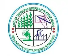 The Department of Patents, Designs and Trademarks is the main government department responsible for patents and trademarks in Bangladesh and is located in Dhaka, Bangladesh.[1][2][3]