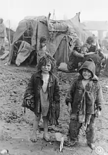The main destinations in the Governorate of Transnistria were Golta, Oceacov, and Berezovca counties.[5] Once they reached their destination the deportees were deprived of food, clothing, and shelter.[6] In those conditions and lacking medical facilities many died in the following winter, mainly of typhus. Estimates are that between 12,000 and 20,000 deportees died in the Romani concentration camps.[7]